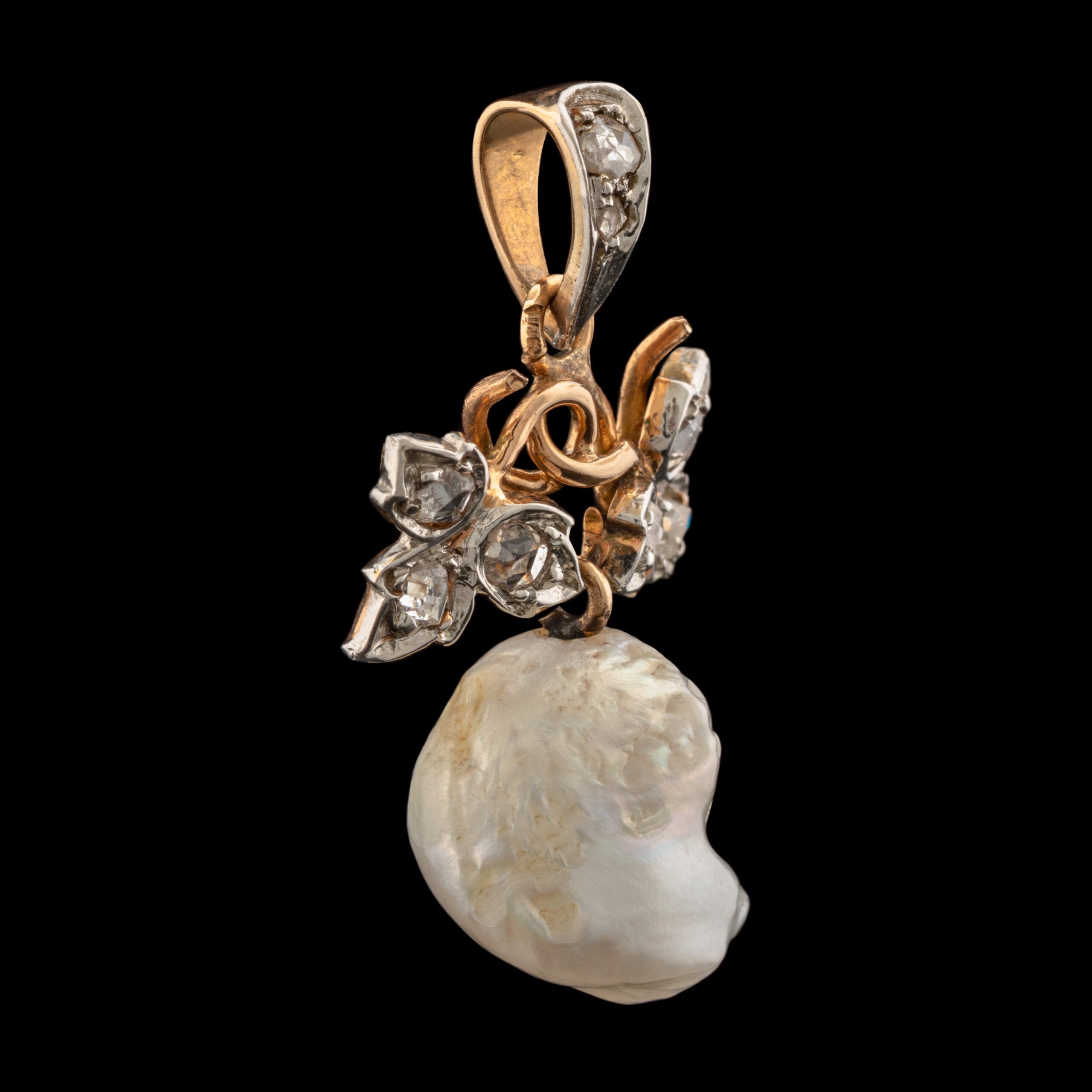 Antique Art Nouveau Pearl & Diamond Pendant in 14K