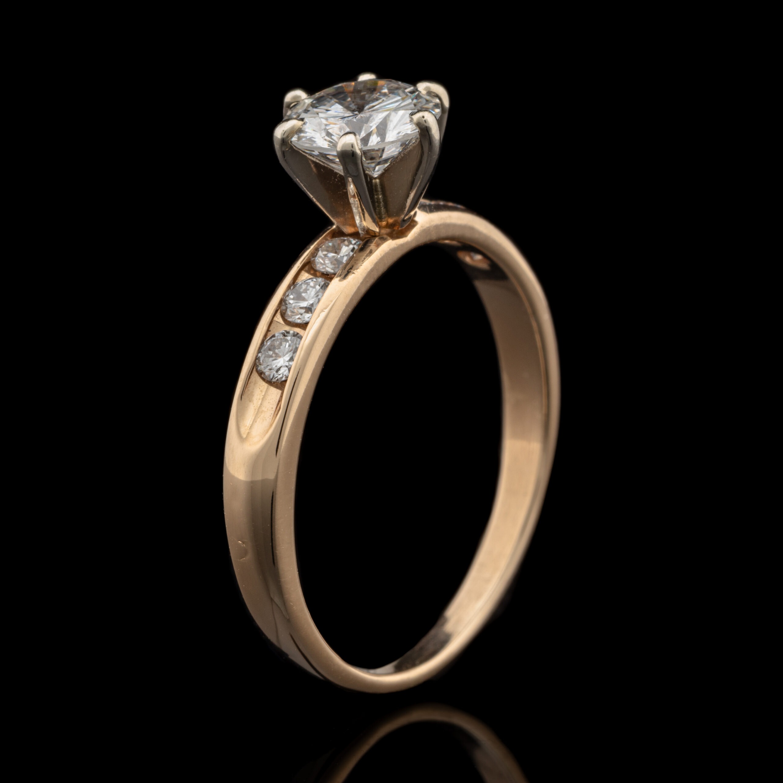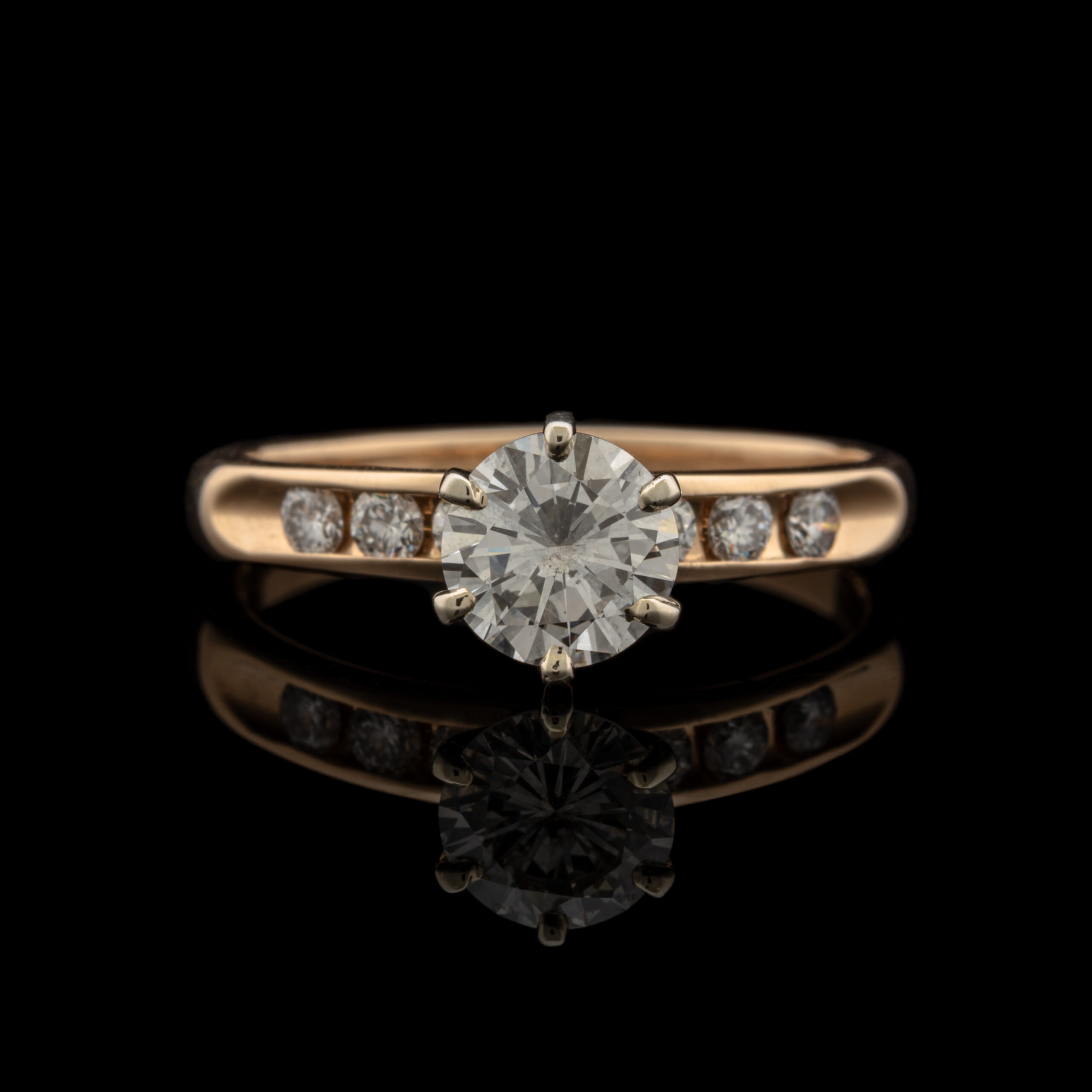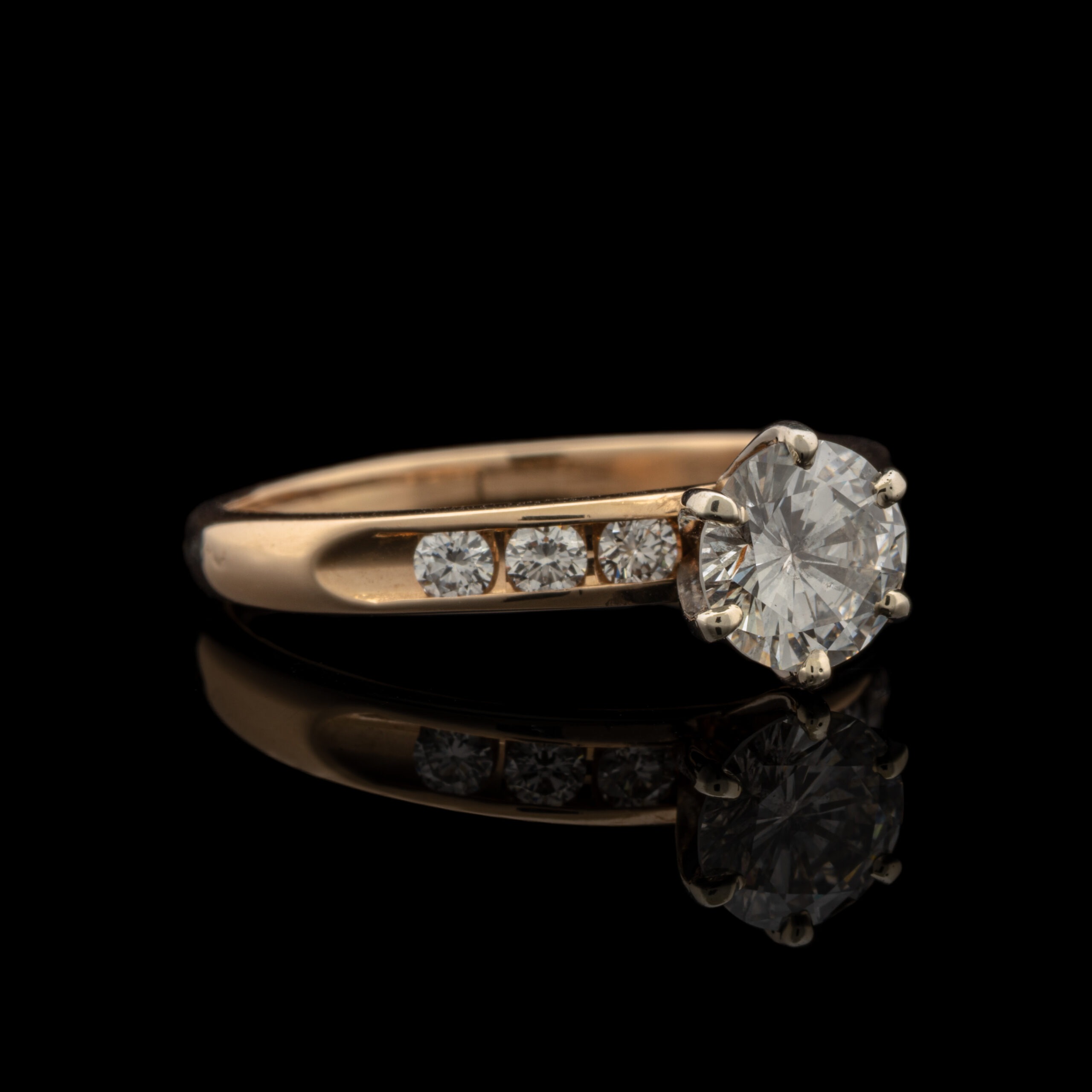 Mounting: 14K yellow gold with 6-prong and channel settings