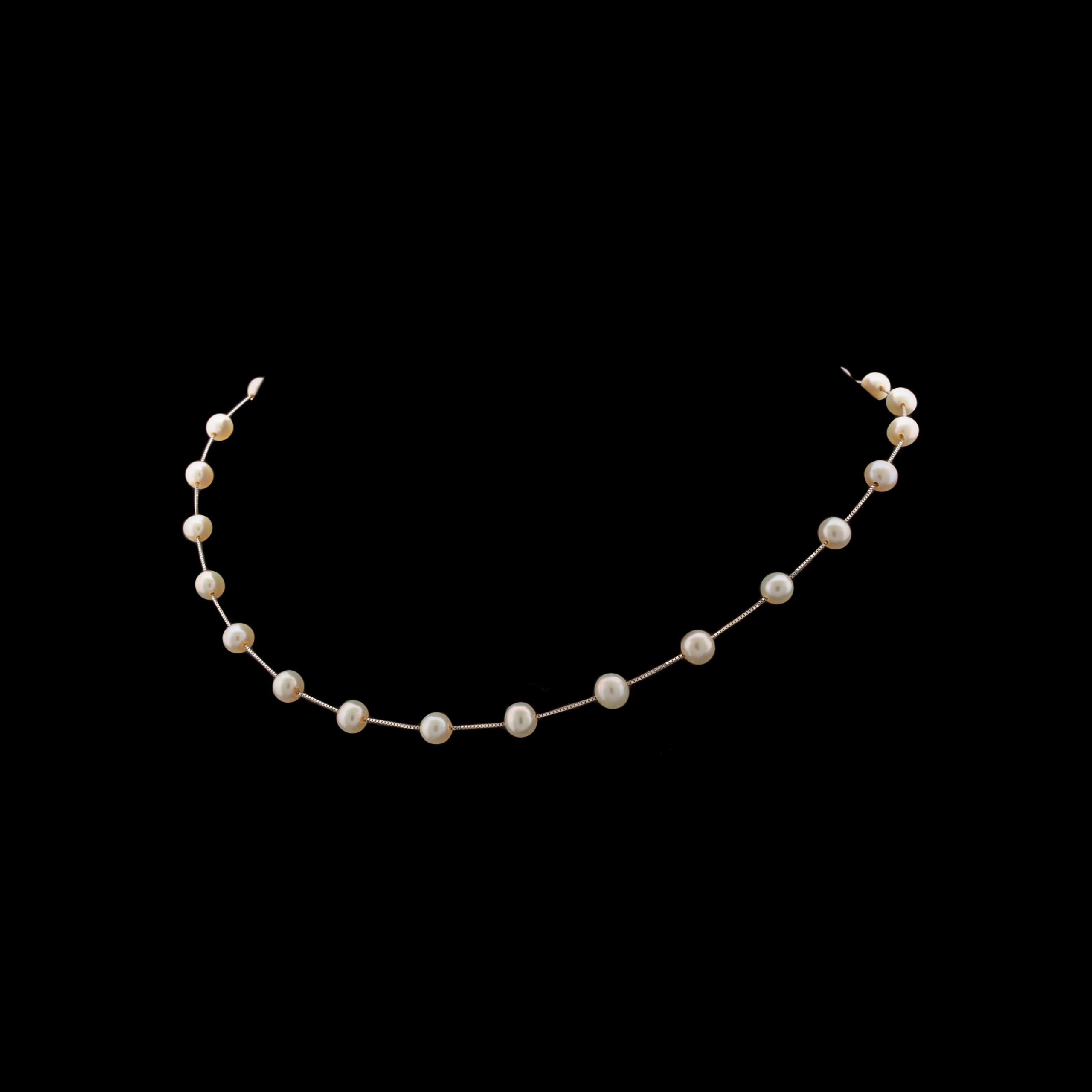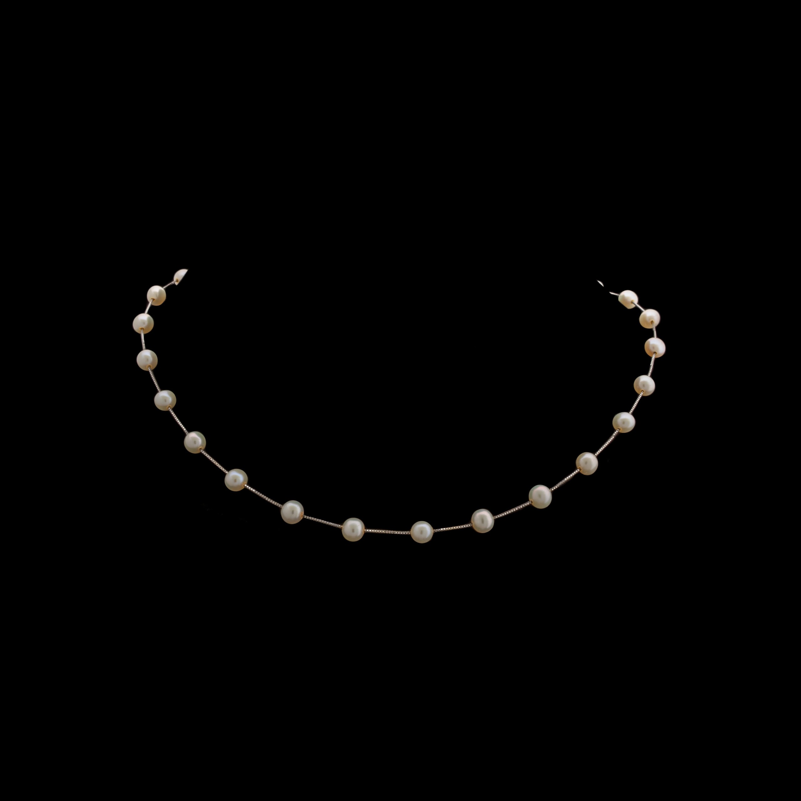 Pre-Owned 14K White Gold & Freshwater Pearl Station Necklace