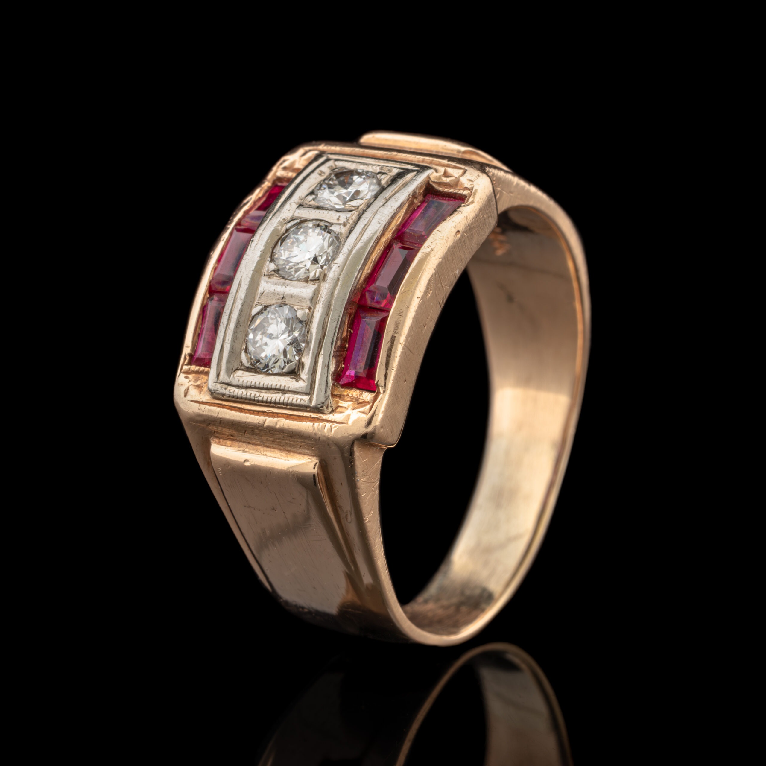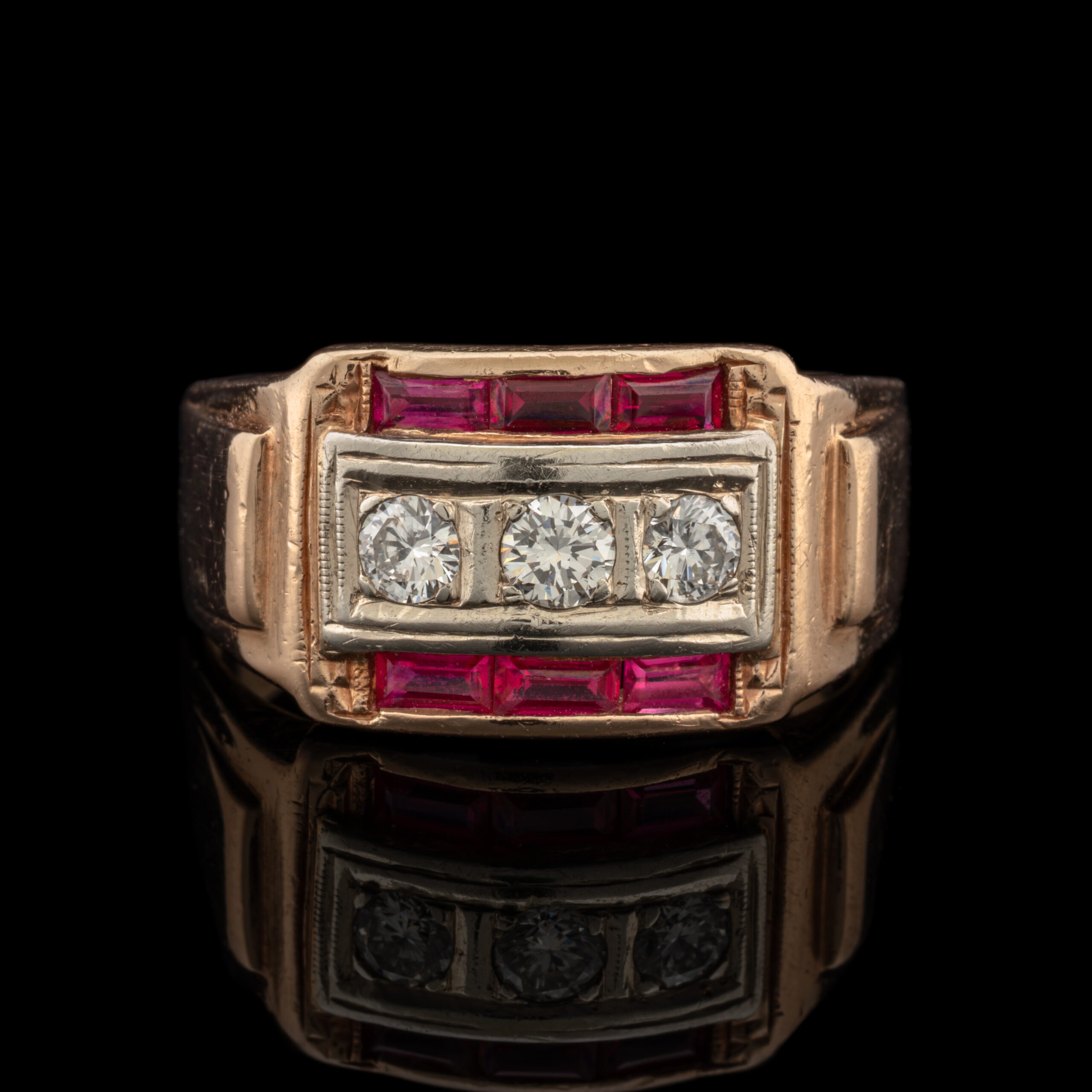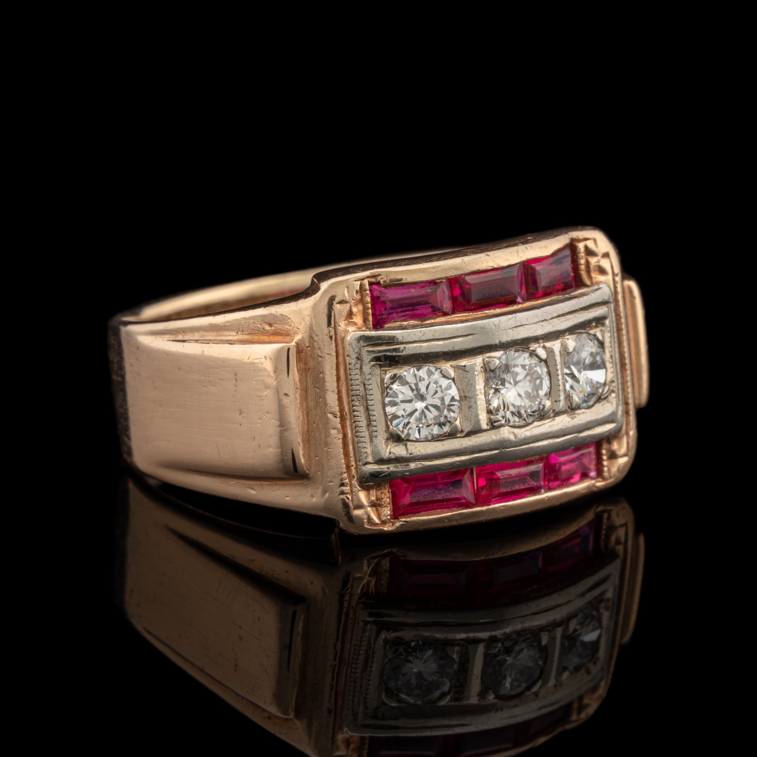 Pre-Owned Diamond & Synthetic Ruby Ring in 14K