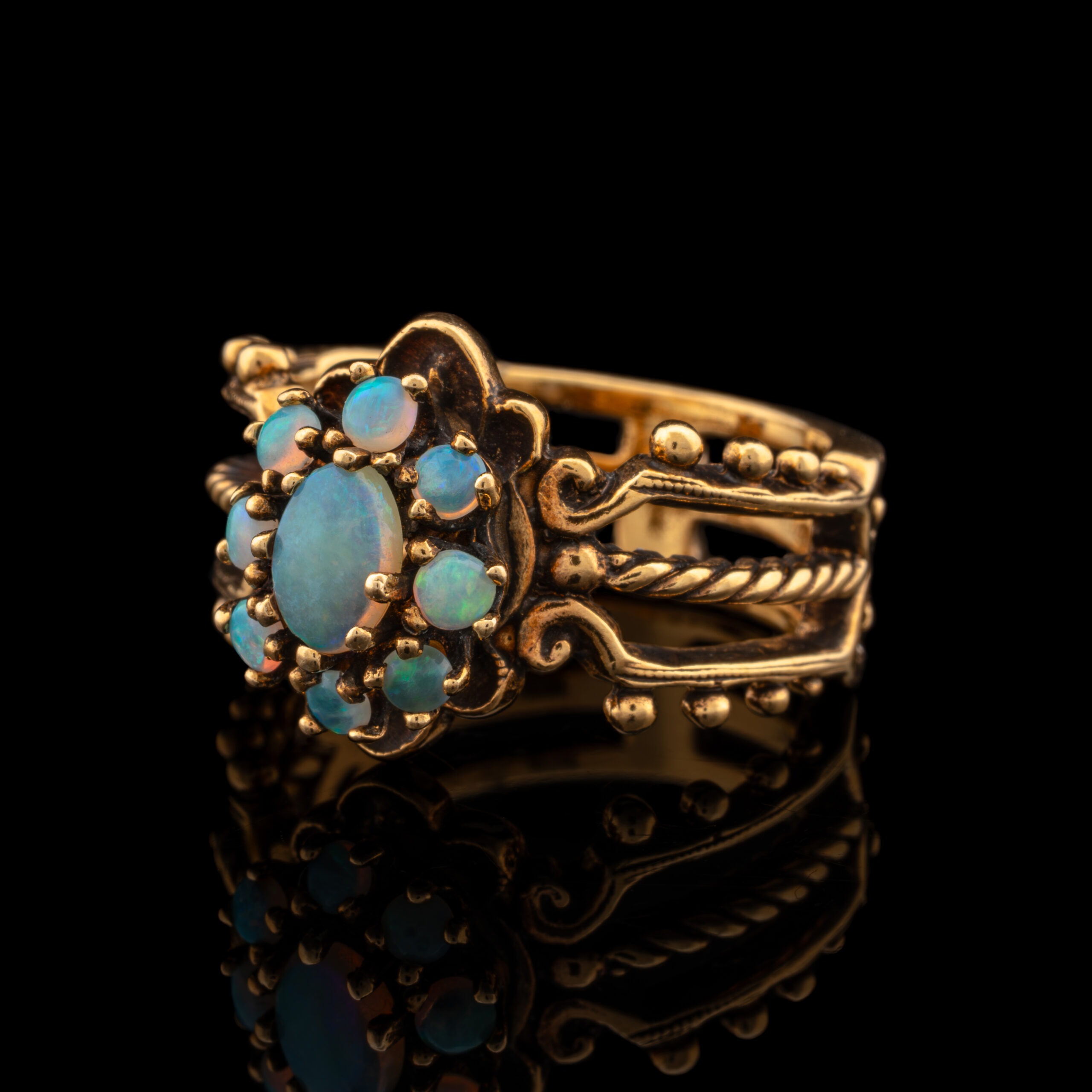 Pre-Owned Opal Cluster Ring in 14K