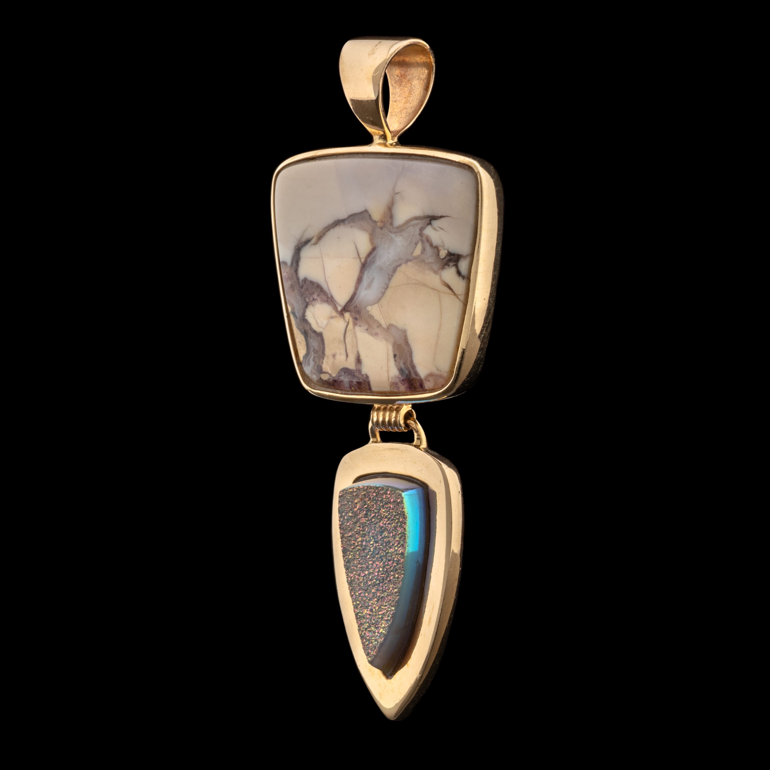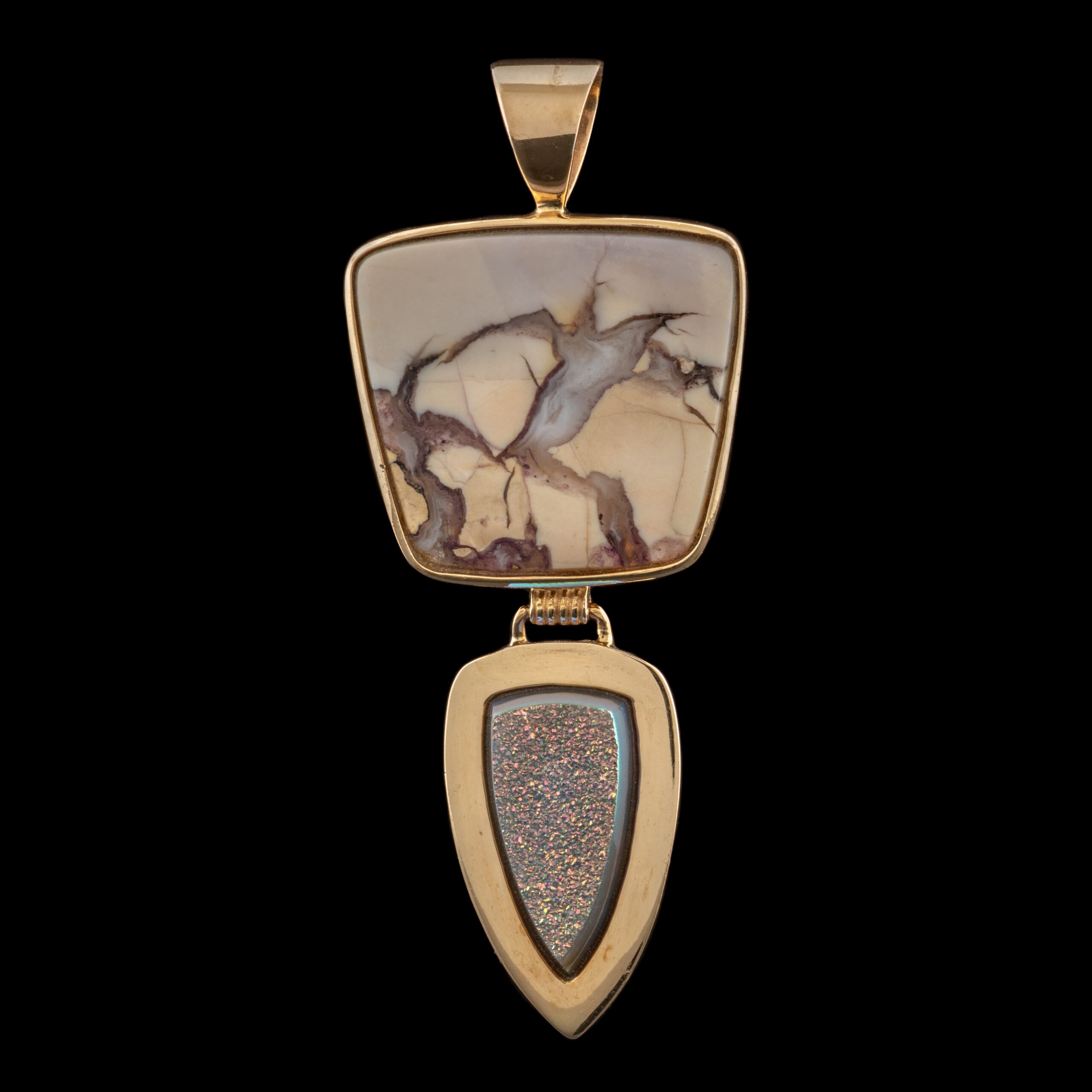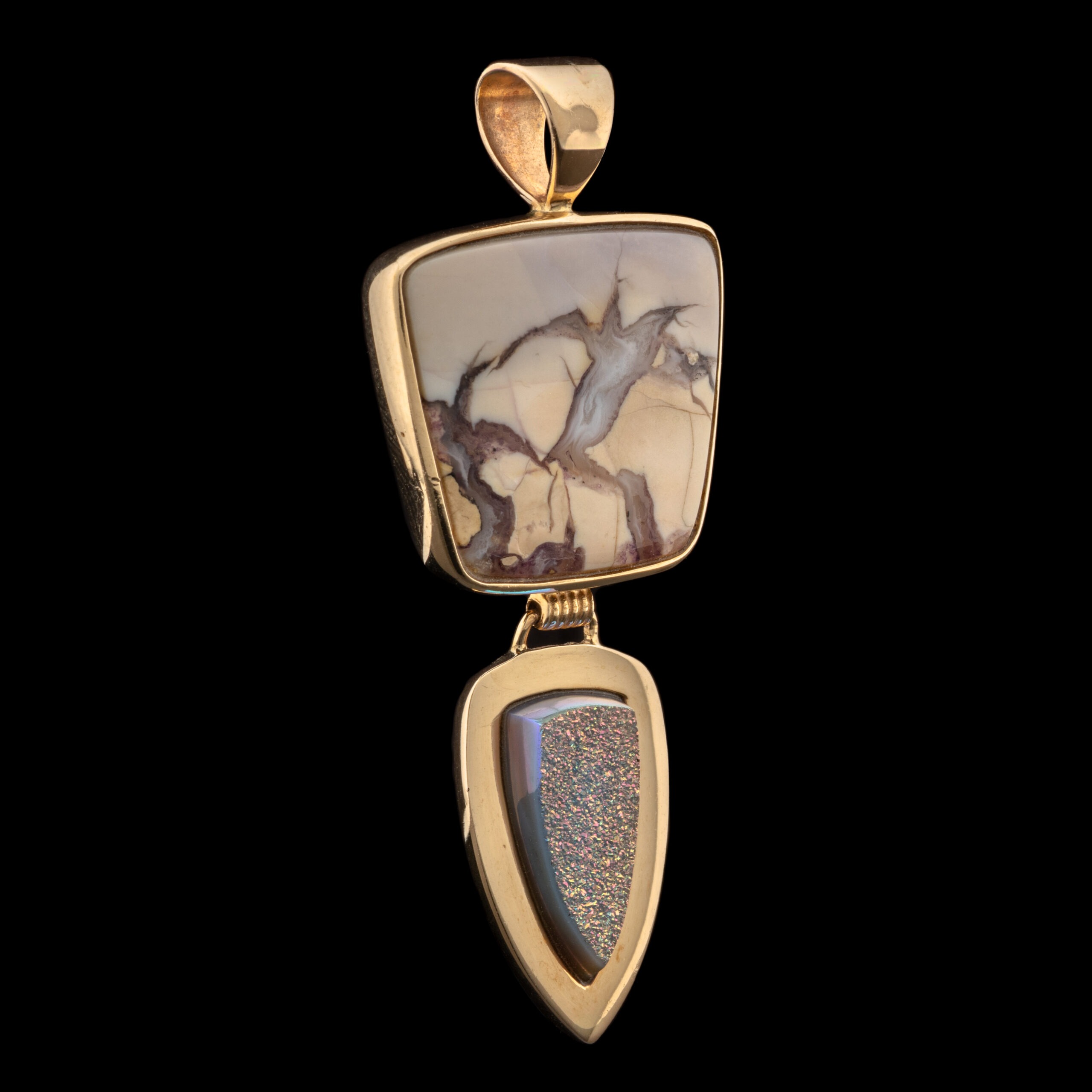 Pre-Owned Picture Agate & Quartz Pendant in 14K