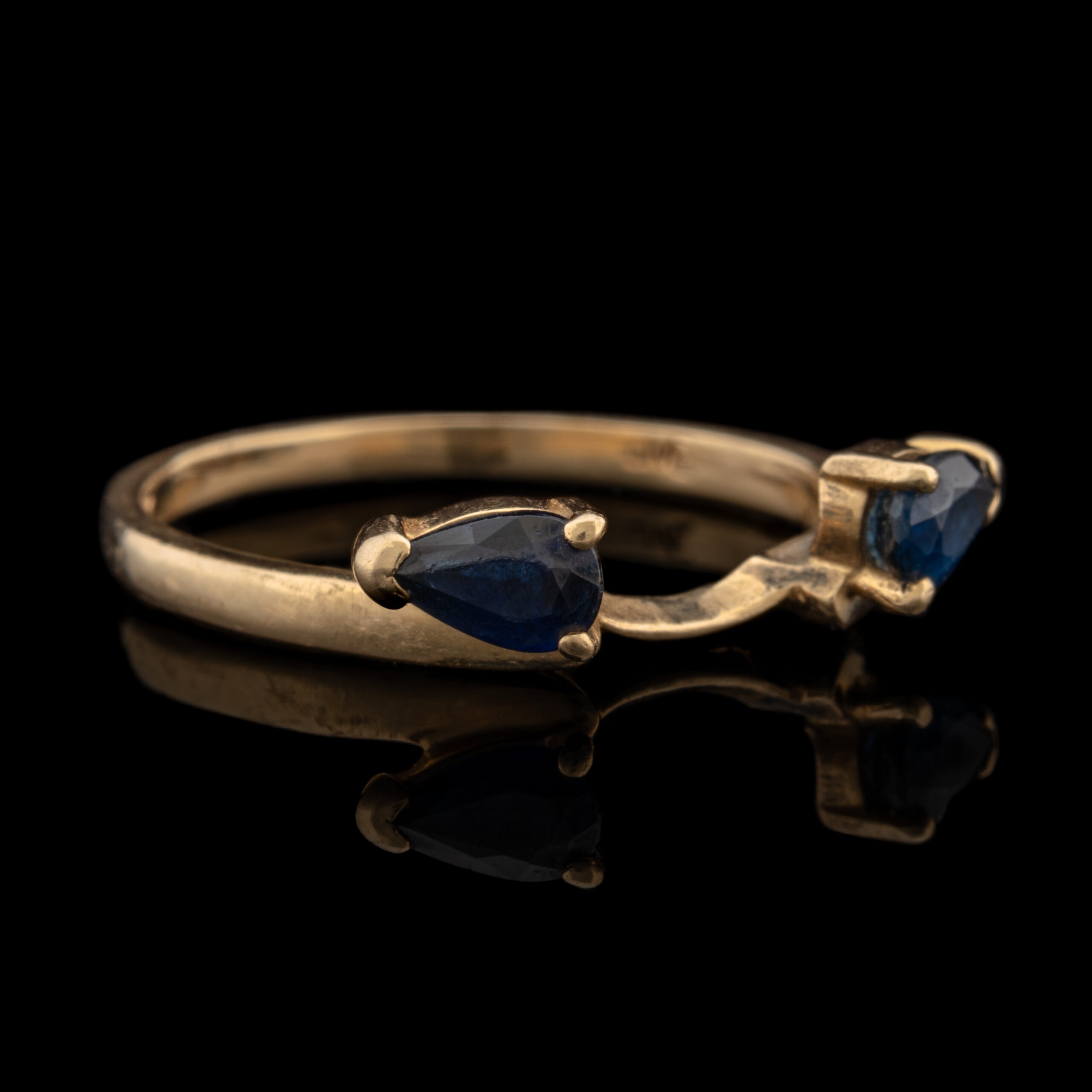 Mounting: 14K yellow gold with the sapphire set horizontally in 3 prong setting
