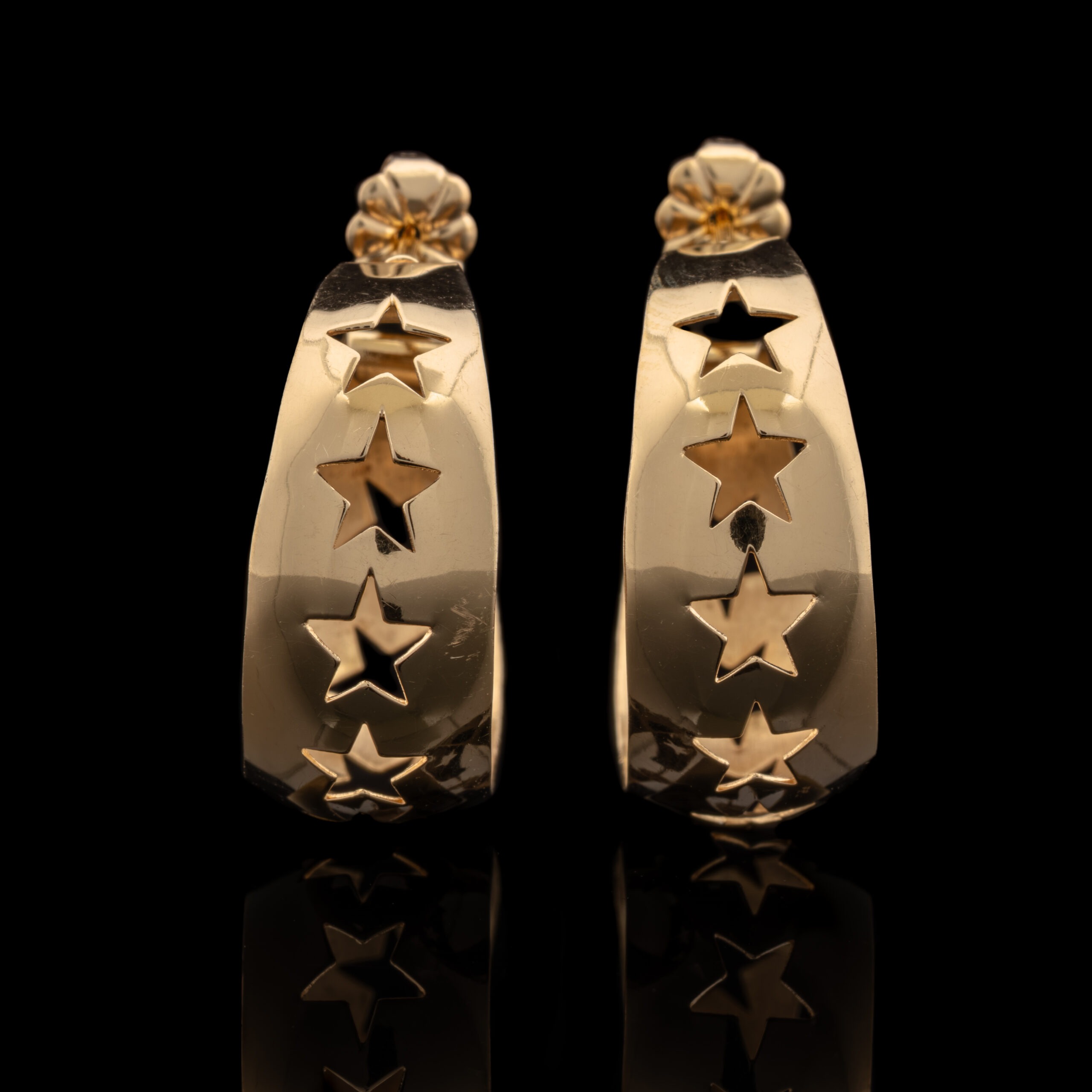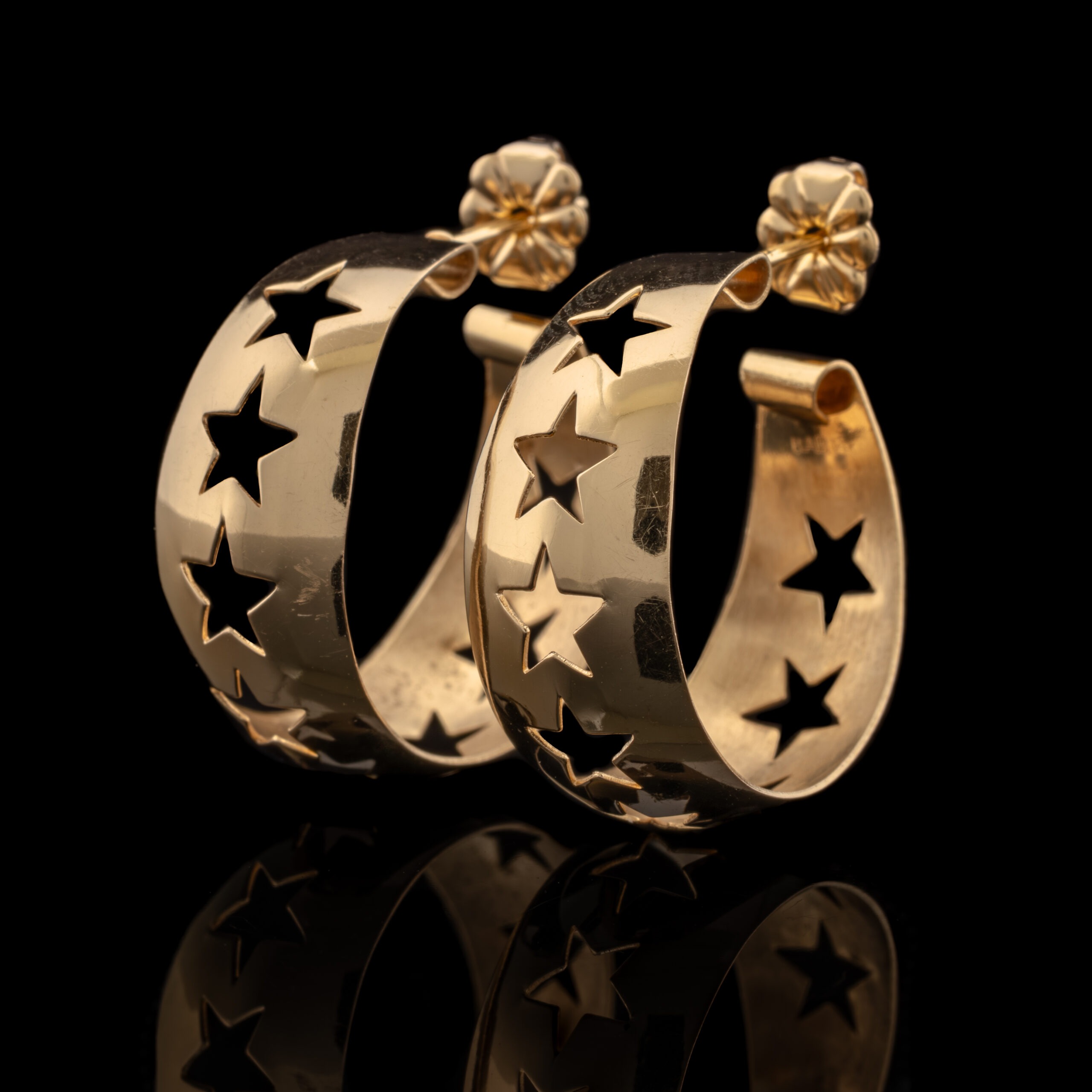 Pre-Owned Star Cut-Out Hoop Earrings in 14K