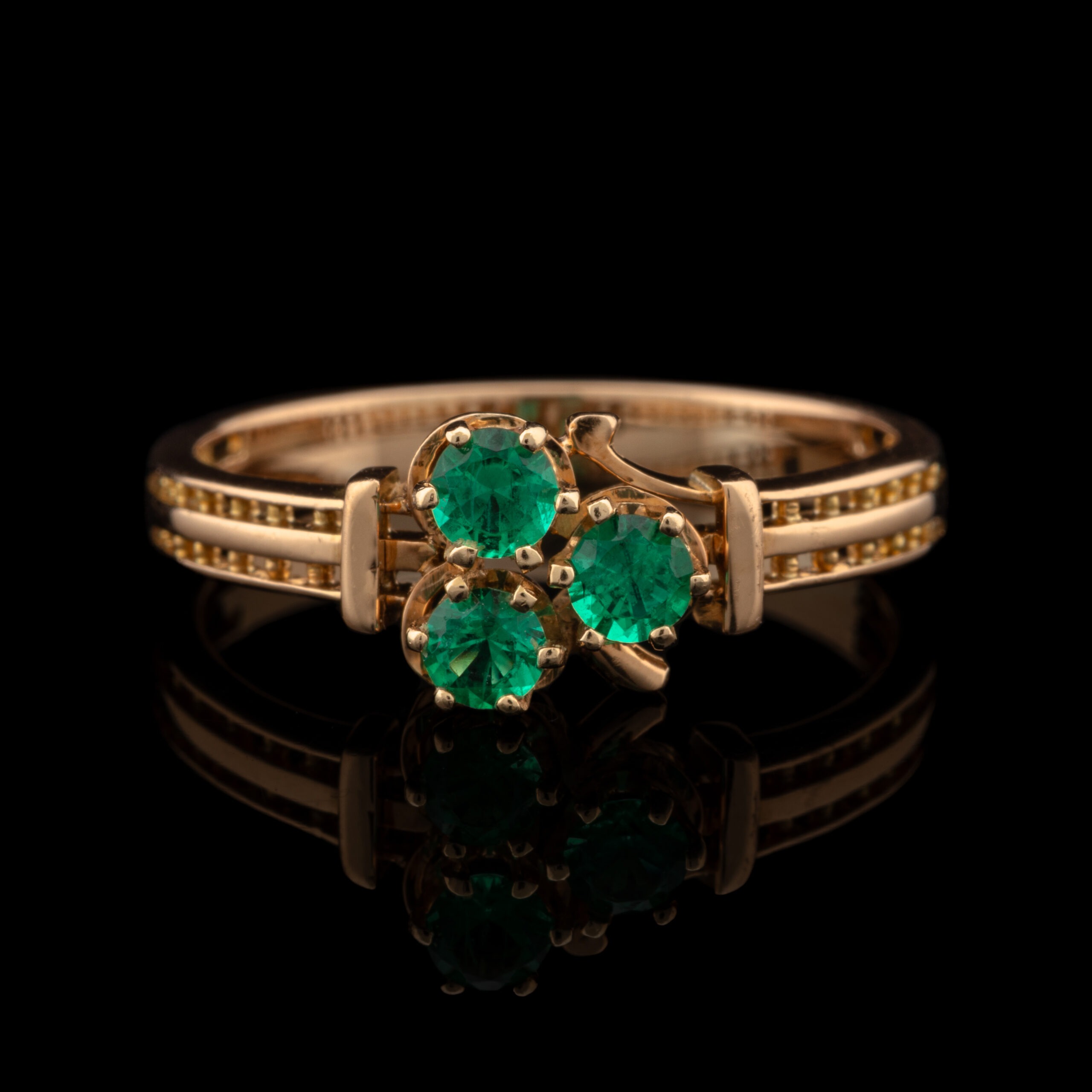 Three synthetic emeralds