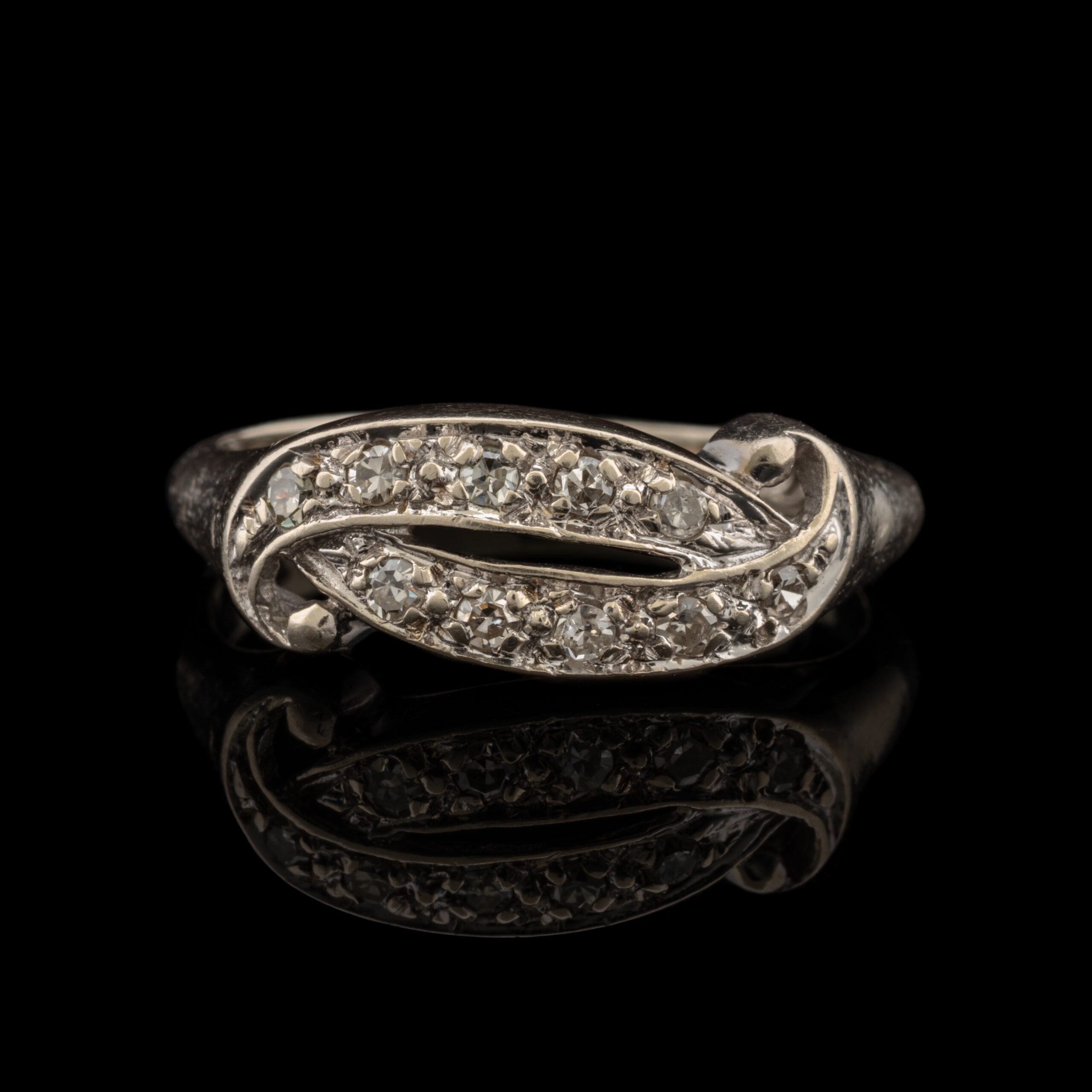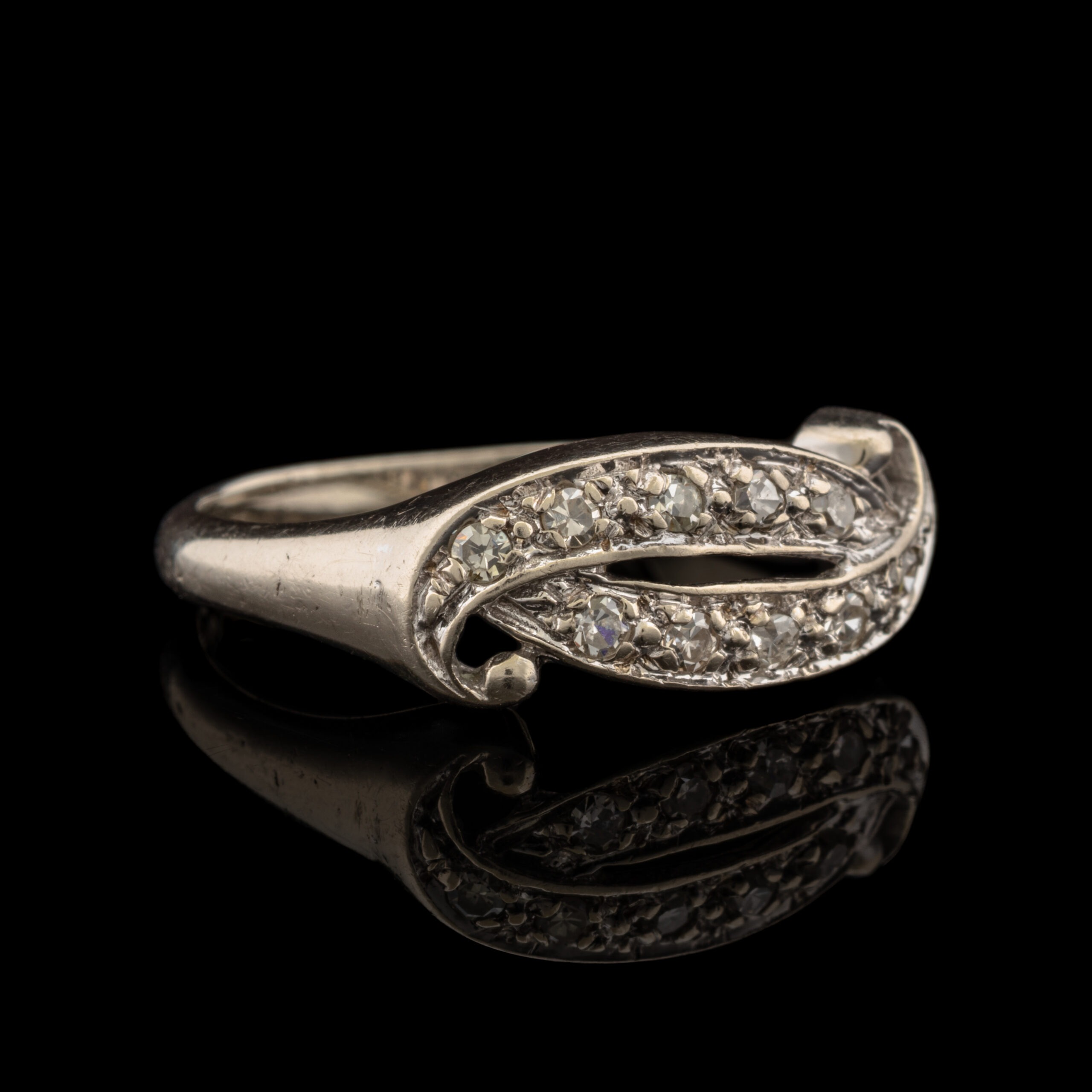 Pre-Owned Vintage Style Diamond Scroll Ring in 14K White Gold